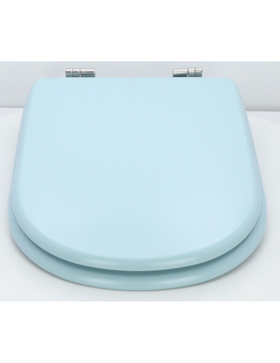 Lunette WC en bois anti-humidité avec charnières et ferrures en acier inoxydable incluses.