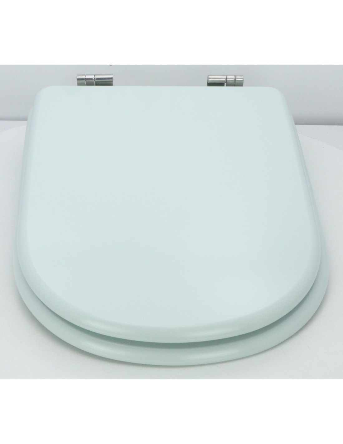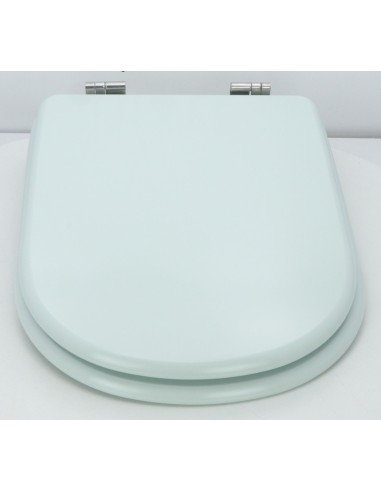 Lunette WC en bois anti-humidité avec charnières et ferrures en acier inoxydable incluses.